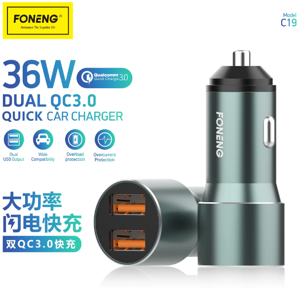 Product details of C19 36W FAST CHARGING CAR CHARGER (DUAL USB)