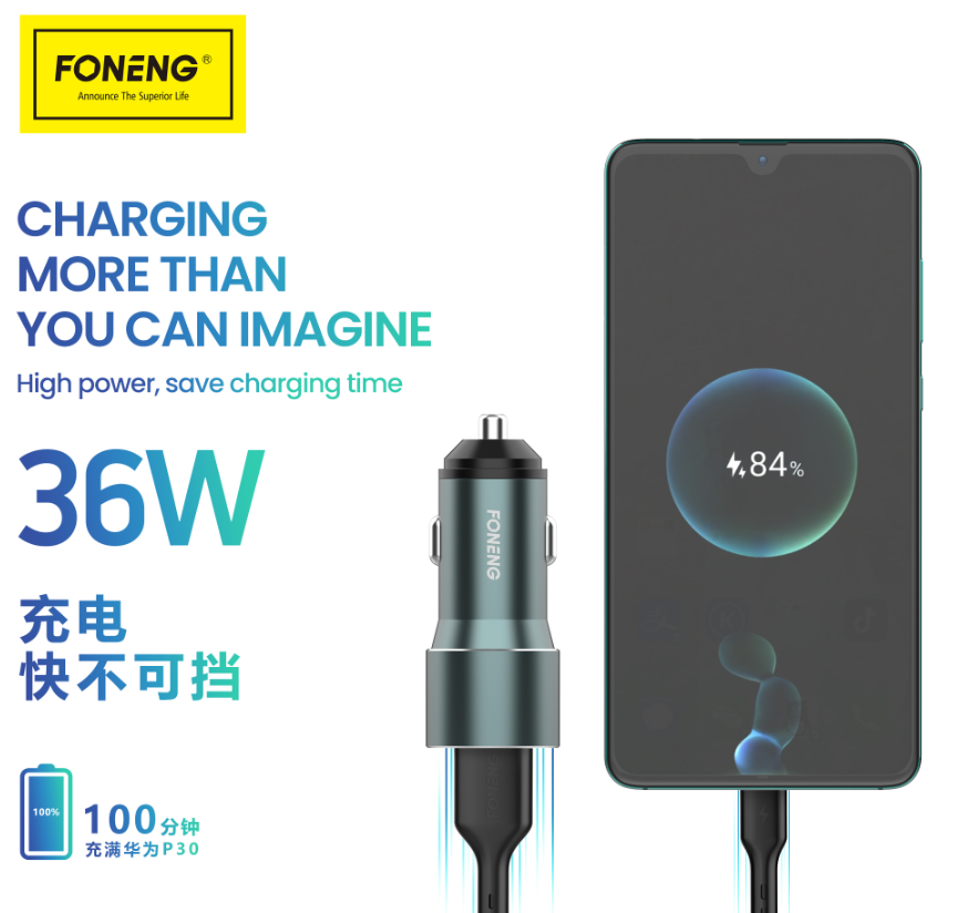 C19 36W FAST CHARGING CAR CHARGER (DUAL USB)