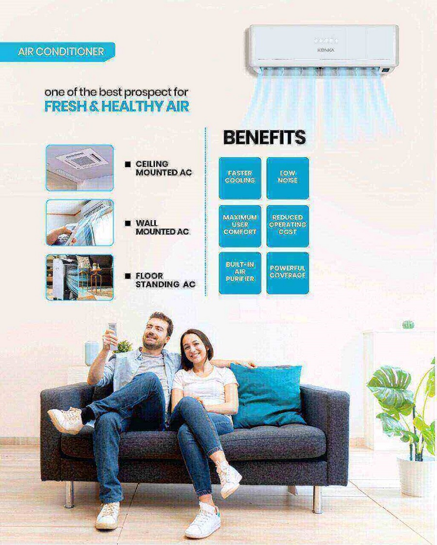 Providing cooling up to 16°C, KONKA Air Conditioners come with dual protection system which ensures that the air in your home is free from viruses, fungi, bacteria, dust particles, hair, spores, etc. Konka Air Conditioners come with I-Sense technology, now save more energy with this energy efficient feature without any compromises on the comfort quotient. Our Air training systems use internal fanning to spread trained air, filling an entire area with structured cool/heat air preserving indoor air quality.